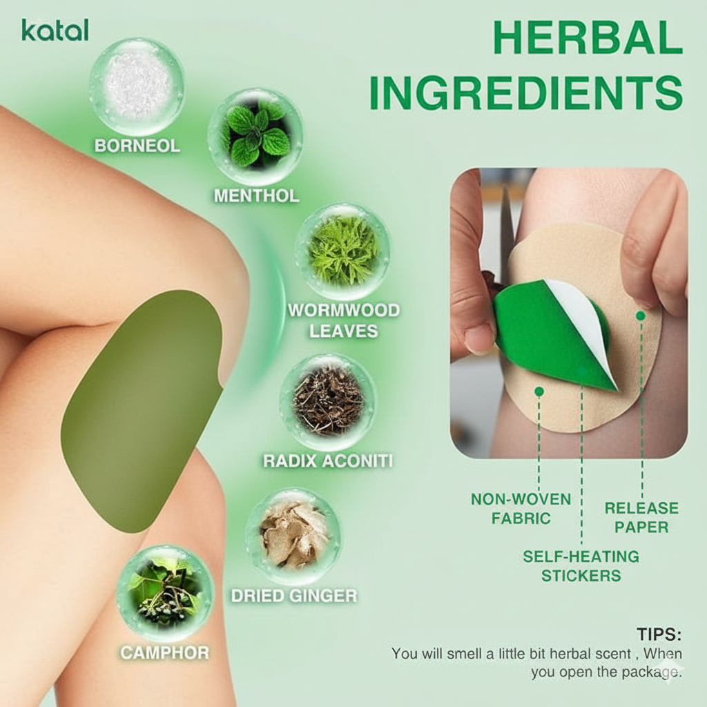 Natural Plant Extracts: Relief knee patches use plant extracts wormwood and ginger without any side effects. They are safe, natural, and can help provide the needed pain relief. Wormwood has a warm nature and is a purely positive plant. Used in moxibustion, it can detoxify and nourish the skin, consolidate the body, effectively relieve neuralgia, low back pain, shoulder pain, drive away cold